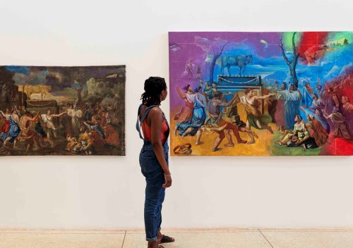 More Booths from 1-54 New York 2019 FRIEZE NEW YORK Arguably the most striking intervention was Ibrahim Mahama’s jute flags, waving in lieu of the 192 UN flags that normally encircle the Rockefeller Center’s iconic ice skating ring. This specially commissioned installation of fifty flags, was crafted by the artist in his native Ghana from used cocoa bean bags. It delivered a strong political punch, touching on themes of slavery, economic disparity and oppression.