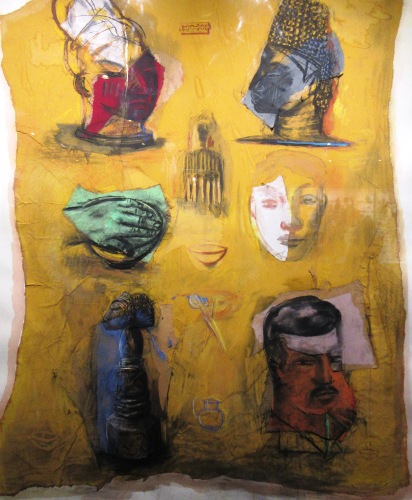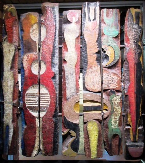 LOUIS MAQHUBELA 'Untitled', oil and paint stick on canvas Lucky Sibaya’s standing sculpture “Xylophone’ with mounted carved and painted wood panels executed in a fully abstract style is an example of how major artworks can escalate in worth dramatically: Purchased in 1988 for R18 000, these panels estimated value at auction is somewhere between 70 and 100 thousand rand (Strauss & Co).