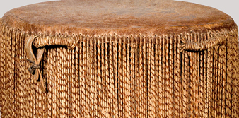 Buganda, Uganda Royal fetish drum from a set of tuned drums or drum chime ca 1910Twine is used to lace two skins together on double-headed drums or just simply to secure the membrane such as the one opposite.