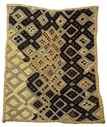 Shoowa cloths are predominantly rectangular in shape and feature strong geometry and strongly contrasting colors, normally cream, yellow ochre or tan... and black.