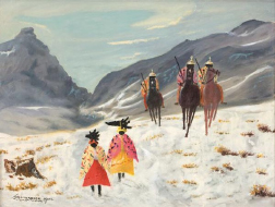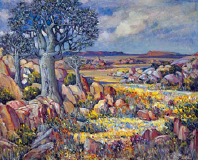 Horseman through the Snow in LesothoHe loved to paint delicate atmospheric landscapes and stated 'But I am an African and when God made Africa, he also created beautiful landscapes for Africans to admire and paint.' This firm resolve was possibly formulated in his early adult years when he went to art school in Namibia and then to Germany for 5 years perhaps escaping the dominance of the governing bodies he was forced to live under.